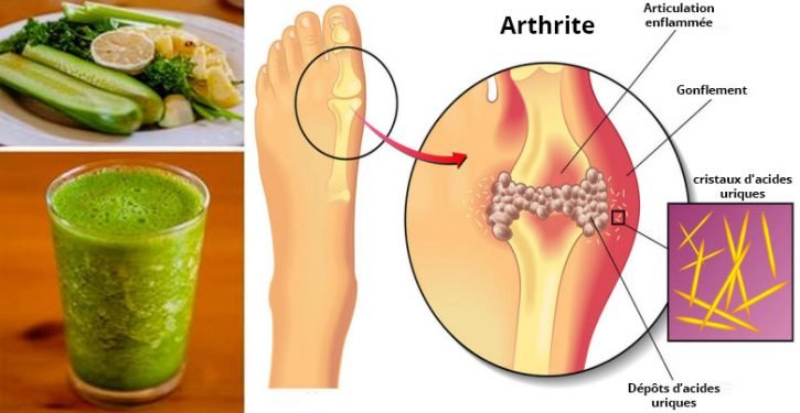 – Le concombre : Ce légume contient une quantité importante d’eau, il contribue à hydrater l’organisme tout en le détoxifiant. Sa forte teneur en dioxyde de silicium lui permet de renforcer vos articulations et ce en renforçant le tissu conjonctif, et son pouvoir alcalinisant aide à diminuer considérablement la cristallisation d’acide urique dans les articulations.