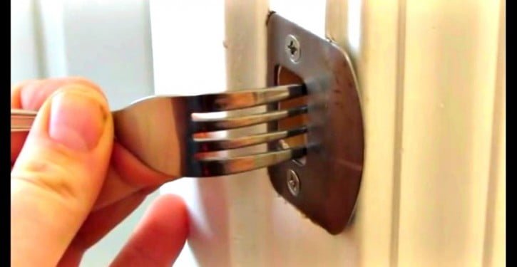 Nous n’avons pas tous les moyens d’investir dans des alarmes, des portes blindées, des caméras de surveillance ou de se payer les services d’une agence de sécurité. Il faut donc parfois faire preuve d’imagination ! Cette femme a trouvé une solution étonnante : elle coince une fourchette dans la serrure de sa porte d’entrée. Explications.